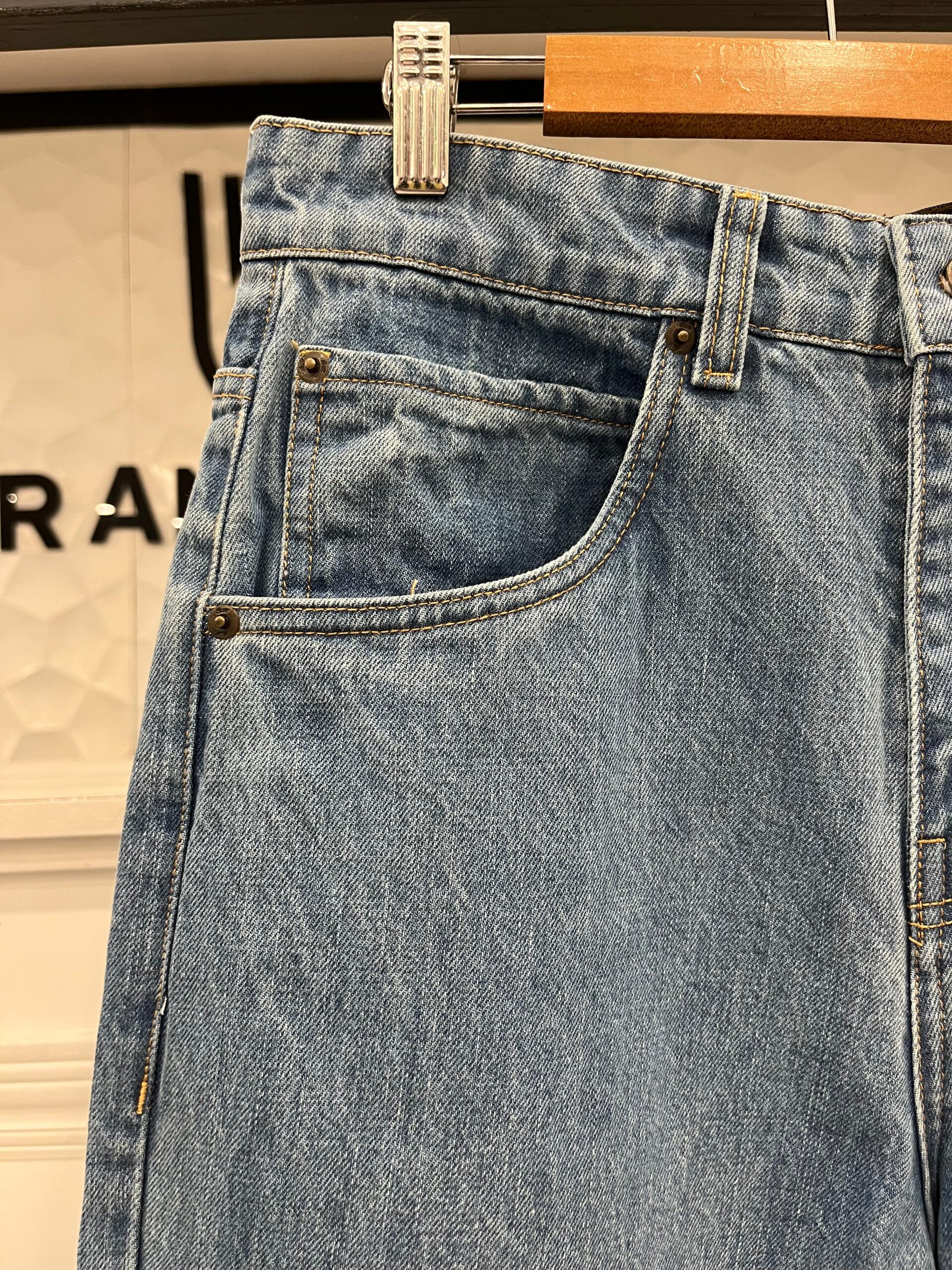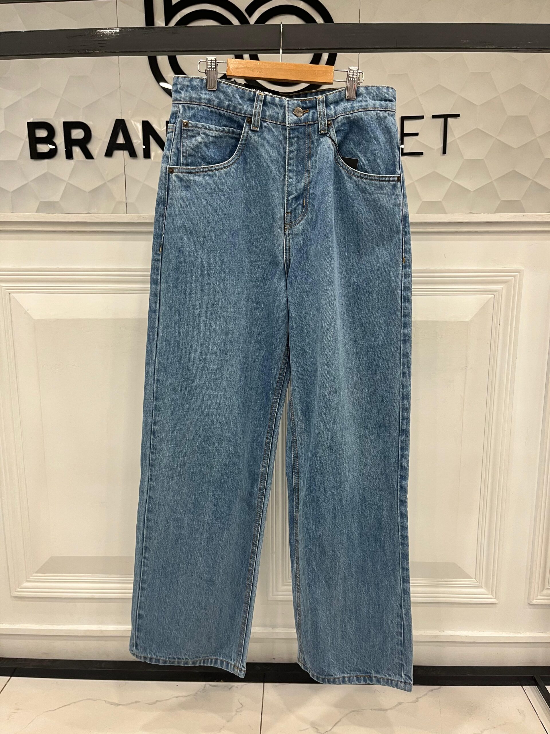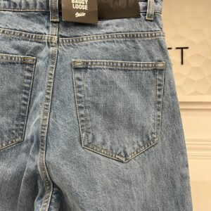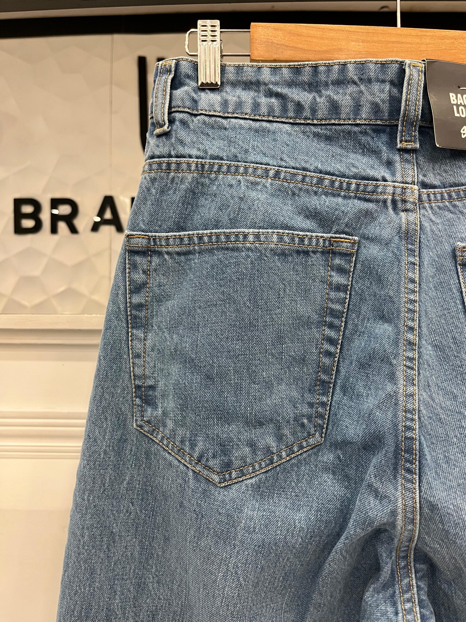 Baggy jeans available in various shades, five pockets, belt loops and a button and zip fly fastening.