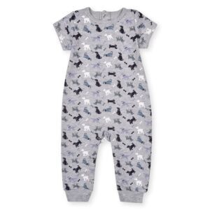 Grey Dog Printed Romper With Green Lining Body Suit And Blue Short