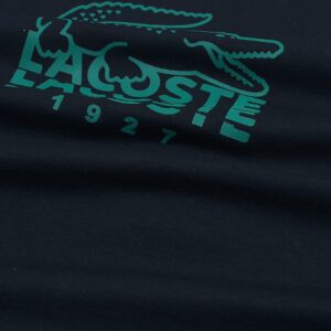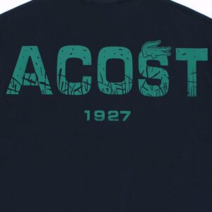 Back Design: Large “LACOSTE 1927” graphic with distressed detailing