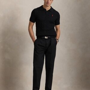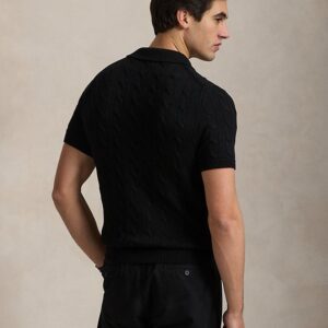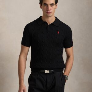 - Rib-knit Polo collar. Two-button placket. Buttons custom-developed with an “RL Ralph Lauren” logo.